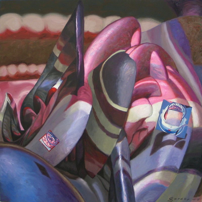 acrylique, huile sur toile et collages, avril 2009, 2,00 m x 2,00 m